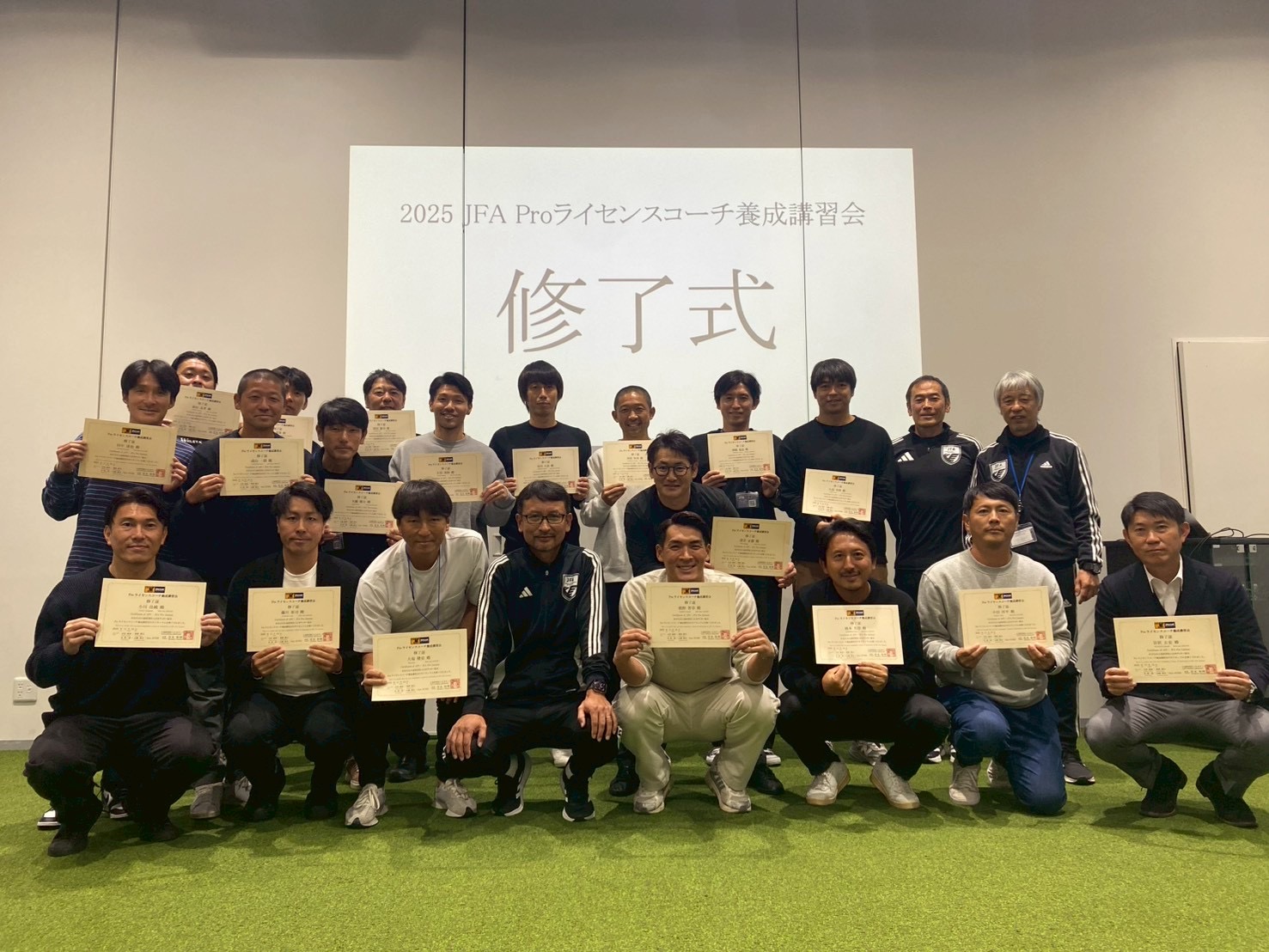 私個人としては、人生を激変させるほどの刺激が詰まった1年でした。日本サッカー最高位の指導者ライセンスの受講を通して、現場の実践経験や人脈の広がりはもとよりサッカーというスポーツをあらゆる側面から見つめ直しました。そして、自分自身を見つめ直す時間にもなりました。自らの「意志」で進み、挑戦し、指導者の可能性という選択肢が広がりました。受講生同士で切磋琢磨することで、まとまろうとしてまとまった集団ではなく、目指す場所や頂へ共に進むからこそ自然と結束した仲間となりました。どんな場であっても日本サッカー界を引っ張る存在になっていくこと…これが与えられた使命でした。