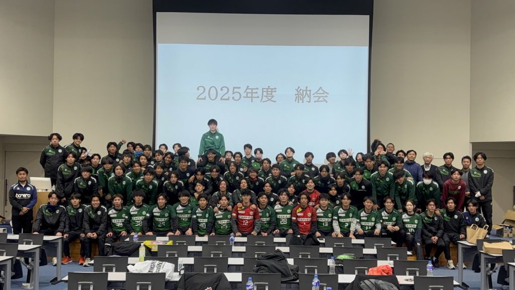 2025年、サッカー部創設10周年という節目の年に関西1部リーグで戦う挑戦権を得ました。強豪揃いのカテゴリーで上位進出と定着を目指して立ち向かいましたが、結果は最下位で2部降格となりました。まずは、今シーズンを最後まで戦い抜いてくれた部員とスタッフ、マネージャーに心から感謝申し上げます。そして、思うような結果を残すことができず、非常に悔しい苦しいシーズンになってしまったこと、どのような立場であれチームを勝利に導くことができなかったことに責任を感じています。